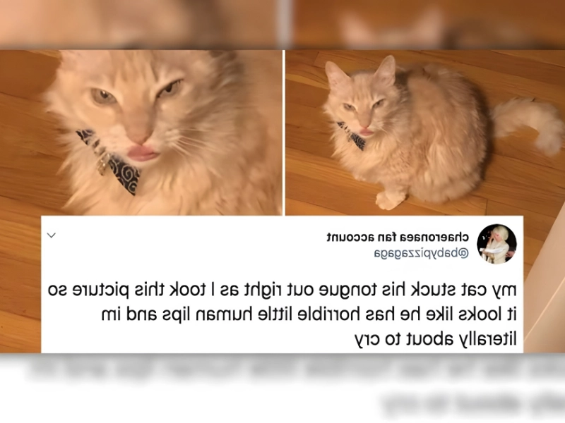Instagram user @babypizzagaga snapped her orange cat sticking out his tongue, making it look like he has "funny little human lips."