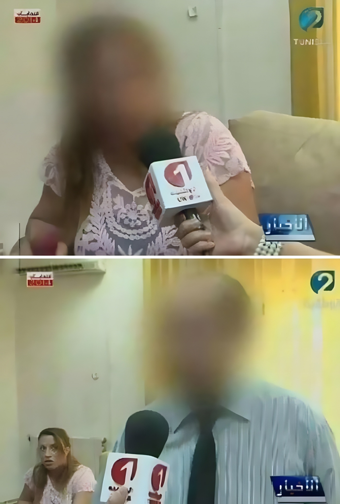 We can’t help feeling for the woman in this segment. She agreed to be filmed, trusting a face blur would protect her identity. Yet, as the second image shows, that didn’t happen—her face appears clearly in the background while the reporter interviews someone else. She doesn’t look pleased. Either the reporter or the editing team slipped up.