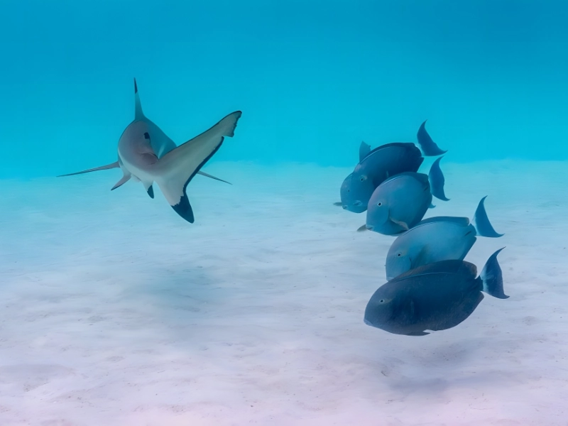 Four surgeonfish trail a black-tip reef shark in Moorea, French Polynesia. In these waters, sharks set the rules. The surgeonfish pause, respect the space, and let the lesson play out—power, balance, and survival in one frame. A worthy 2023 Comedy Wildlife selection.