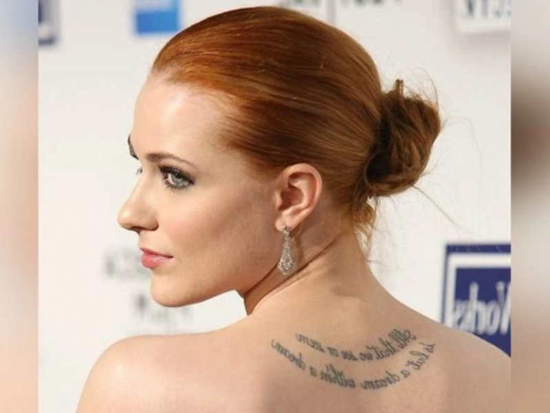 Evan Rachel Wood: Literary Tattoos Evan Rachel Wood has a tattoo on her back quoting Edgar Allan Poe: "Is all that we see or seem, but a dream within a dream?" This shows her interest in questions about reality and perception.