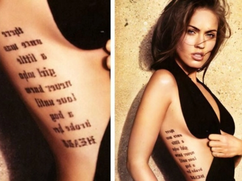 Megan Fox: Expressing Herself Through Tattoos Megan Fox is recognized for her bold tattoos, which she displays as a form of self-expression. One of her well-known tattoos is a philosophical quote on her side, reflecting her appreciation for meaningful thoughts. This tattoo adds to her style and serves as a reminder of her values.