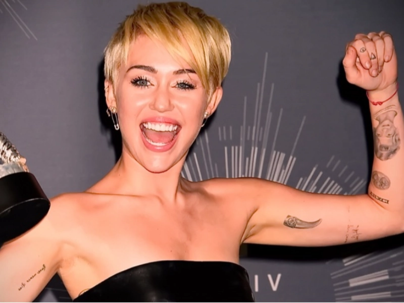 Miley Cyrus: A Growing Collection of Tattoos Miley Cyrus is known for her fearless approach to tattoos, often adding new designs. She treats her body as a canvas, displaying a variety of tattoos that capture different parts of her personality. Her ribs, thighs, arms, and chest feature many tattoos, each telling its own story.