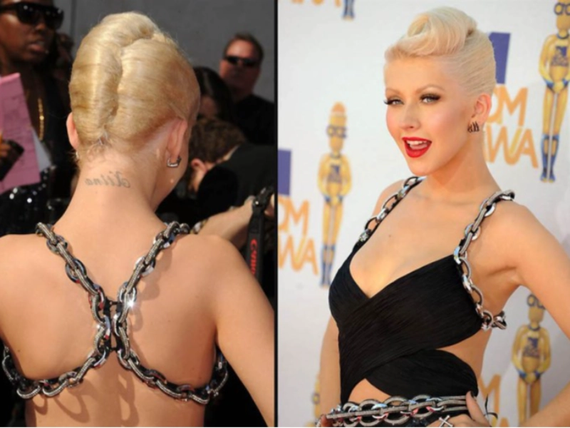 Christina Aguilera: Tattoos as Identity Christina Aguilera proudly shows her nickname, "Xtina," tattooed below her neckline. This detail reflects her artistic persona and her bond with fans. Aguilera has five tattoos in total, each with its own story and meaning.